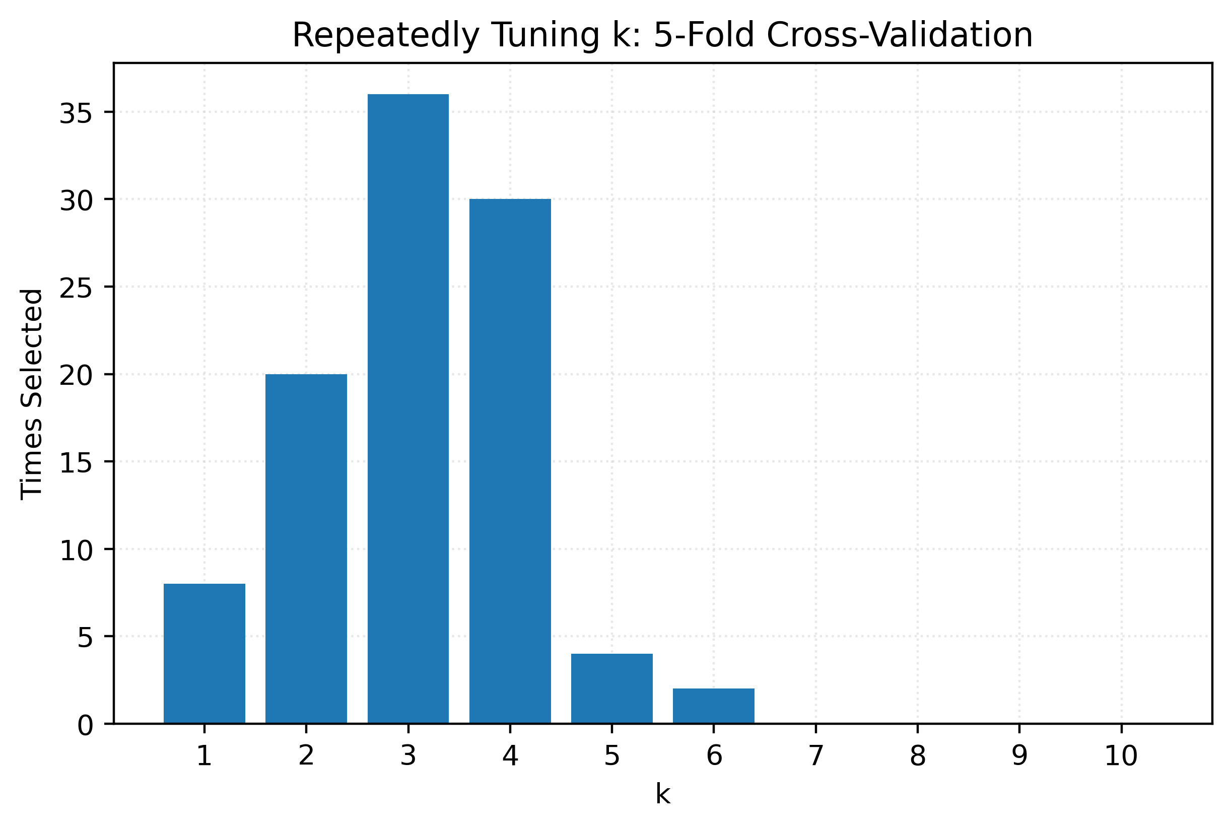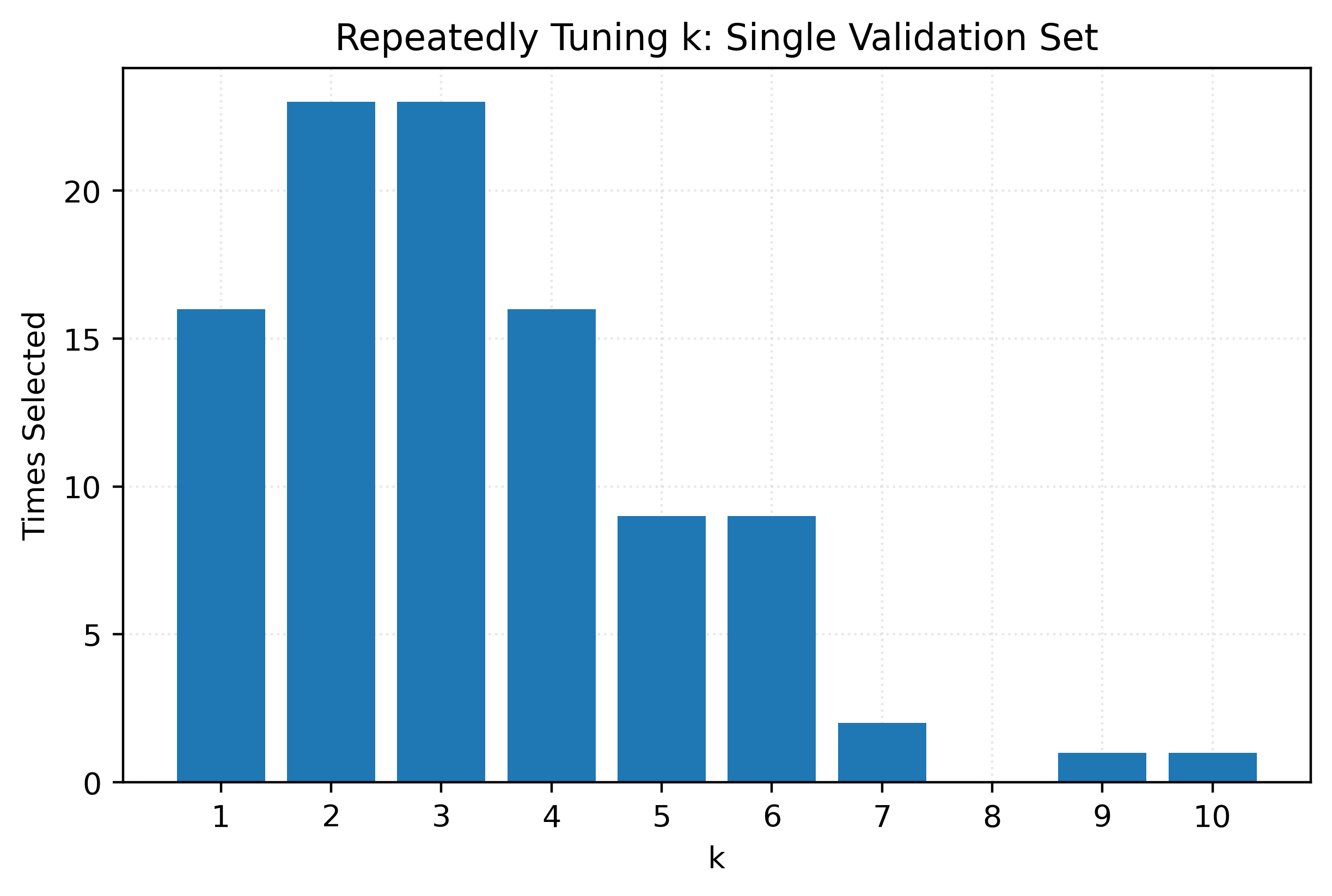 return X, yk_values = np.arange(1, 20, 2)Correct Approach: Validation and Test Data