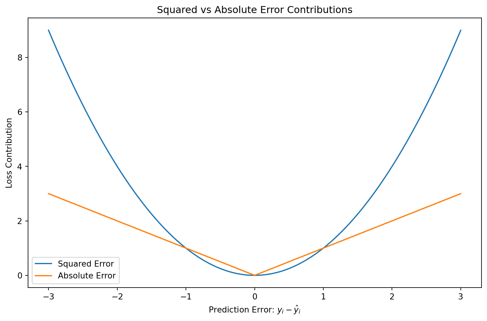 ax.set_title("Squared vs Absolute Error Contributions")