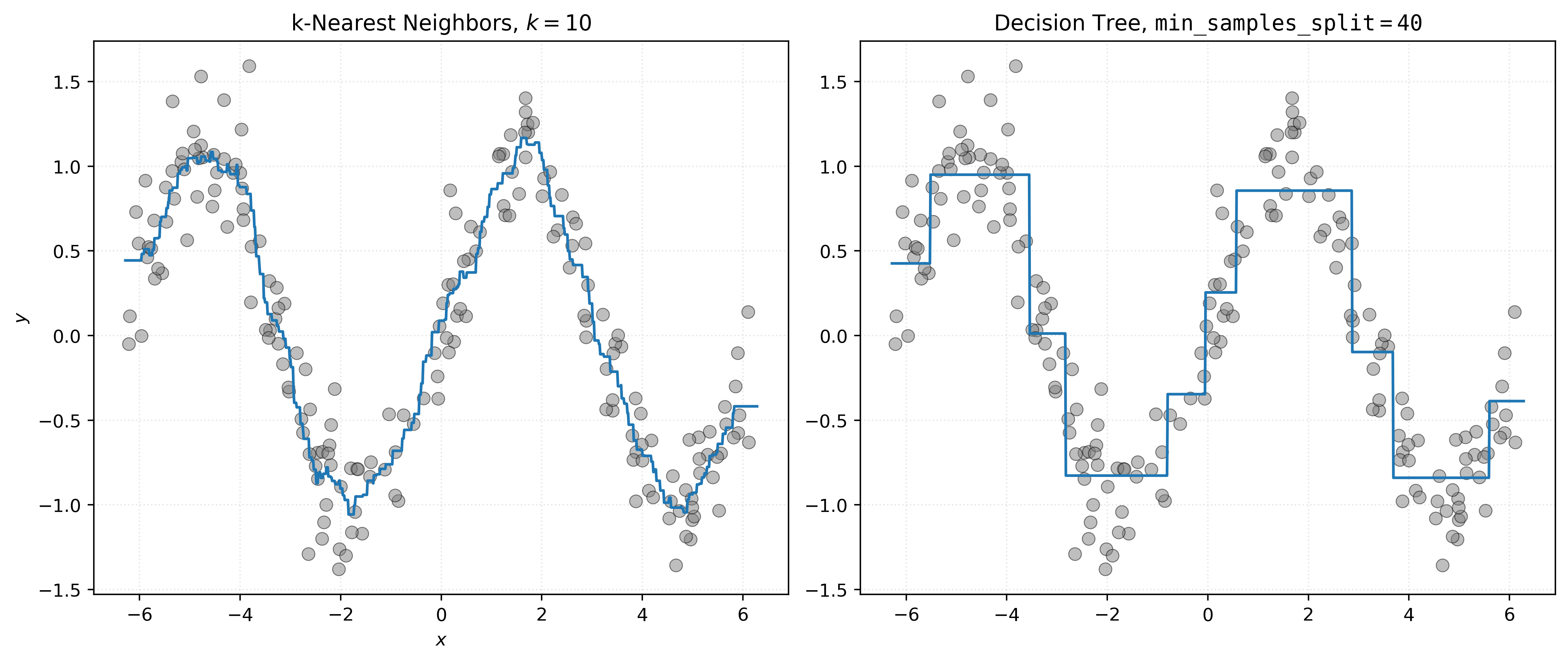 axs[1].scatter(X, y, s=50, alpha=0.5, c="tab:gray")