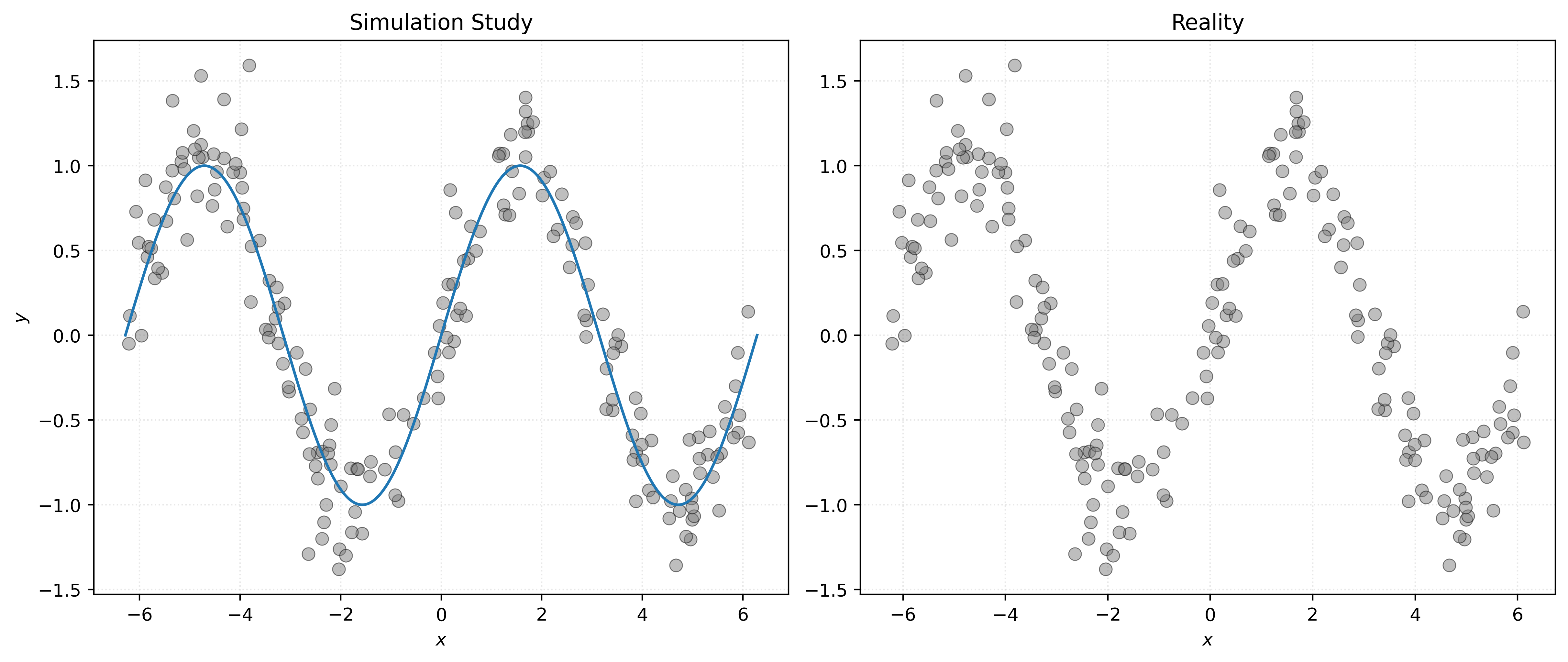 return X, yX, y = simulate_sin_data(n=200, sd=0.25, seed=42)Show Code for Plot